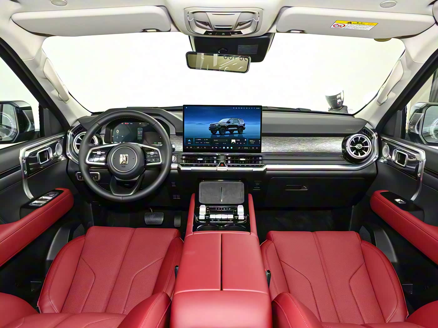 进入车内,内饰采用T型布局,中控台以横向线条为主,强化层次感。12.3英寸全液晶仪表盘与14.6英寸中控屏组成双联屏设计,内置高通骁龙8155芯片,支持语音连续识别、可见即可说等功能。方向盘采用真皮包裹,握感扎实,支持四向电动调节。座椅采用Nappa真皮材质,前排座椅支持加热、通风及按摩功能,后排座椅支持比例放倒,空间灵活性出色。全车配备11个扬声器的燕飞利仕音响系统,进一步提升了乘坐舒适性。同时,新款坦克400车内座椅采用Nappa打孔真皮材质包覆,前排座椅支持加热、通风,主驾座椅还提供记忆迎宾、电动4向腰托以及3挡8点式按摩功能,后排座椅则拥有2档靠背角度调节。